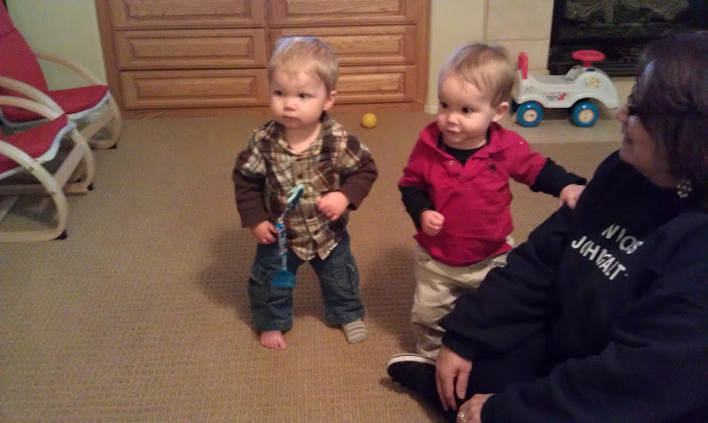 Here are some more pictures of our big one year old! He started taking a few steps just before his first birthday. Now he will take between 6-10 steps at various times, but he is so fast at crawling that it is definitely his preferred method of travel. He continues to be such a joy to us and has become quite a little cuddle bug. He still only has two teeth and doesn't really say any words consistently. I hear that boys are slower:)